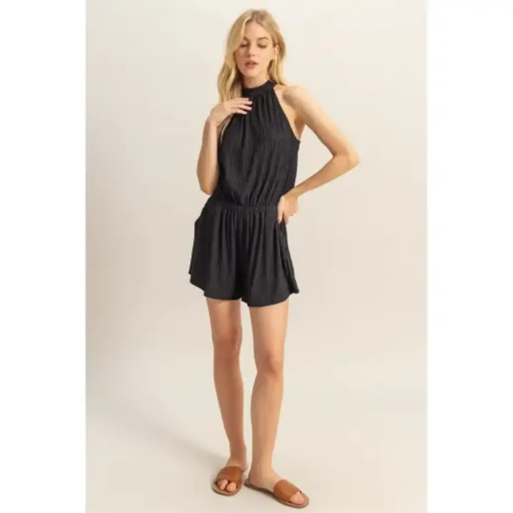 This Soft, Textured Knit Romper Wins You Over With Its Stylish Halter Neckline, Tie-Knot Closure At The Back, And Figure-Defining Cinched Elastic Waist. This Romper Has A Relaxed Silhouette, So Pair With Your Sneakers